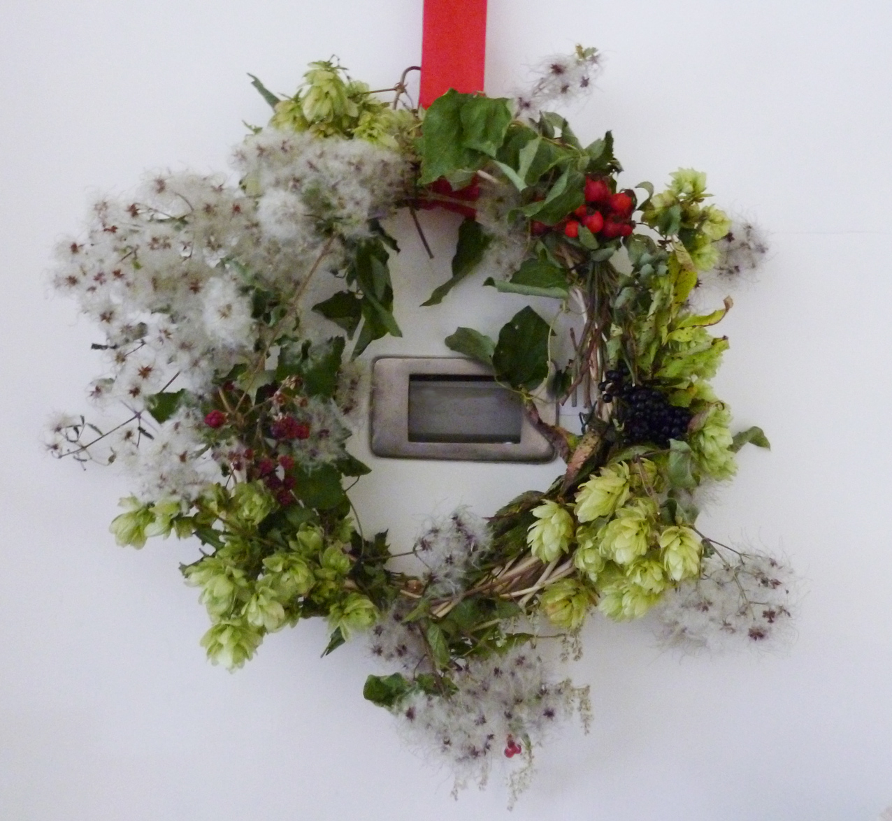 Den Sommerkranz verabschieden, Buntes von draußen zu einem neuen Kranz verweben. Zum Beispiel so …