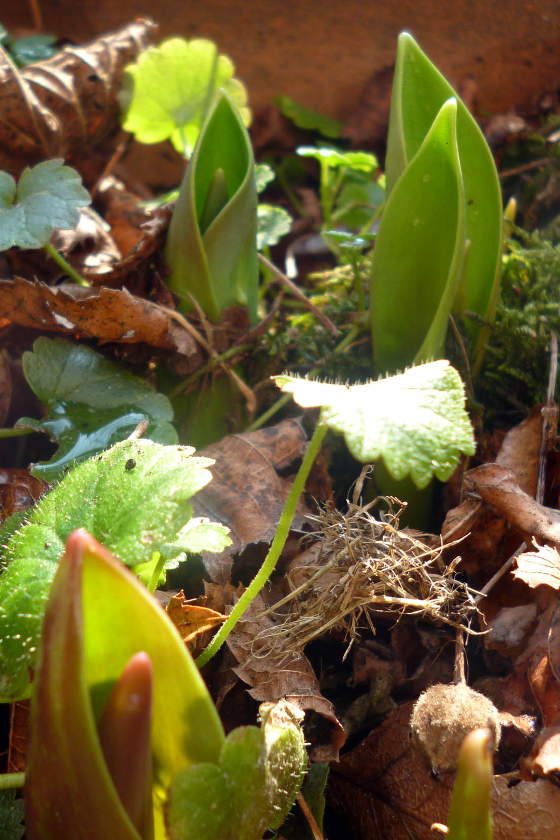 Ich bin gespannt auf die Tulpen. Das sollten so wild gefiederte und gemusterte Exemplare werden. Und beim Betrachten der Fotos fällt mir auf, dass sie in diesem Stadium auch einigermaßen interessant aussehen. Klitoral vielleicht? In den wilden Töpfen darf jedes so wachsen, wie es will.